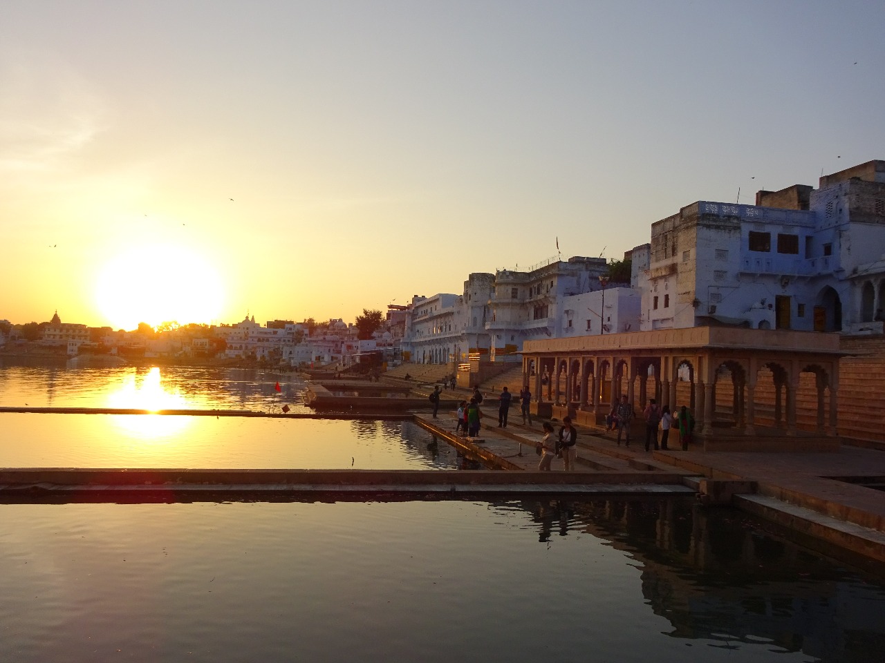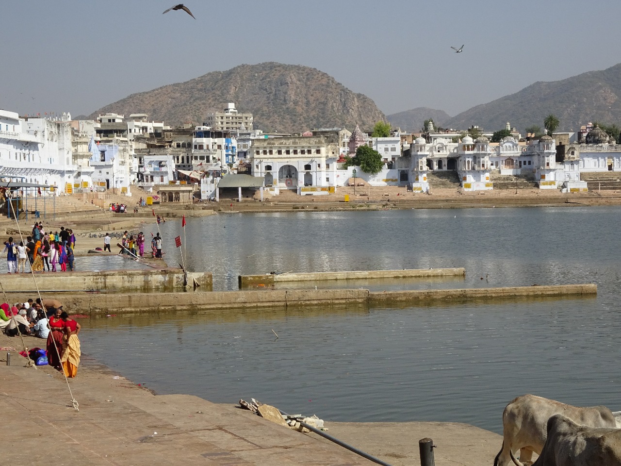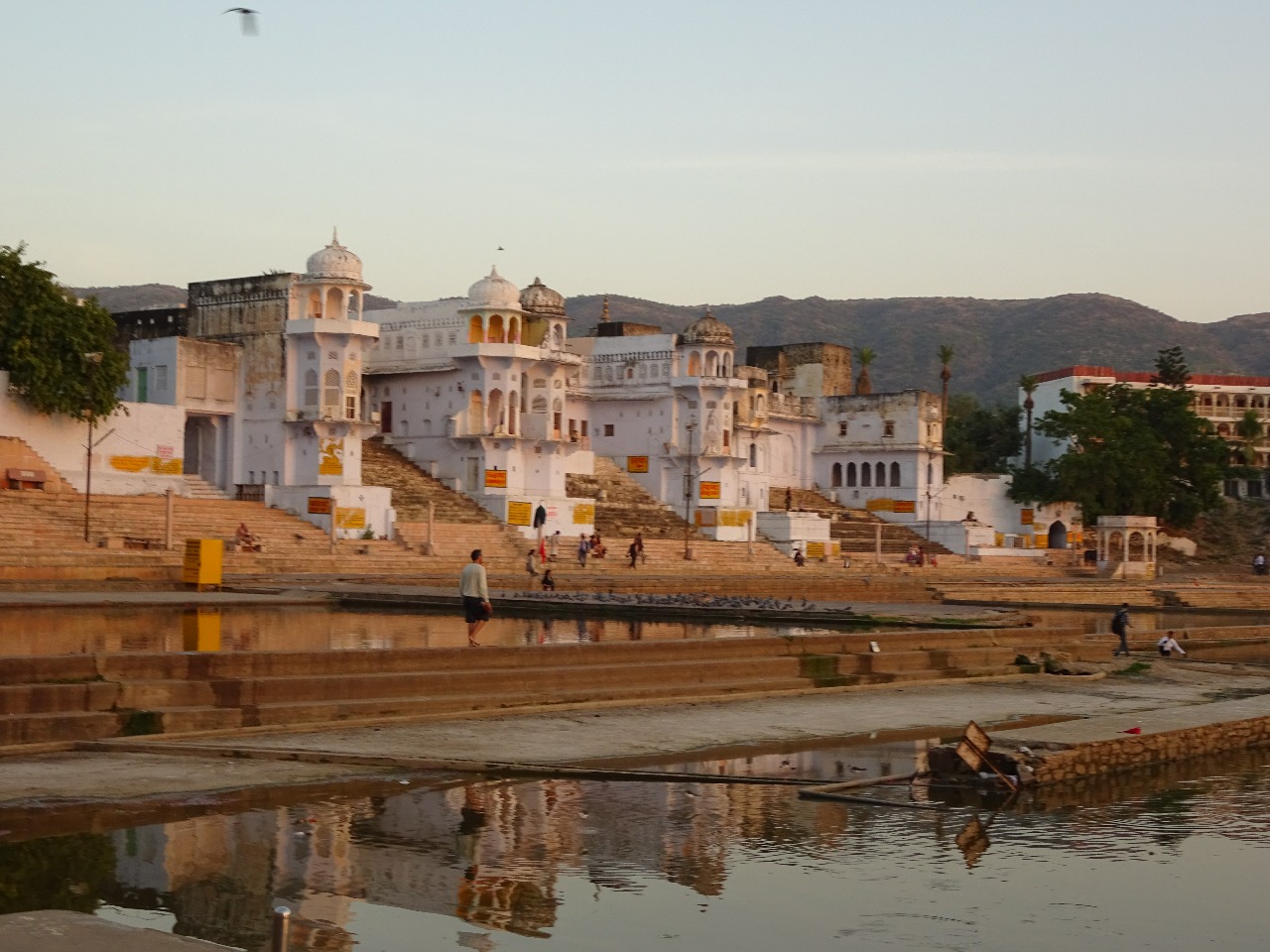 Diantre!! Bigre!! Nous qui avions realise un quasi sans faute jusque la, il fallut arriver a Pushkar, haut lieu de pelerinage hindou blotti autour d un lac sacre et comptant plus de 400 temples, dont l un des rares dedie a Brahma, pour subir notre premiere escroquerie indienne...il n aura suffi que de quelques fleurs de lotus posees dans le creux de nos mains...notre bon coeur, d une naivete confondante, assurera peut etre la renovation de l integralite des temples?
